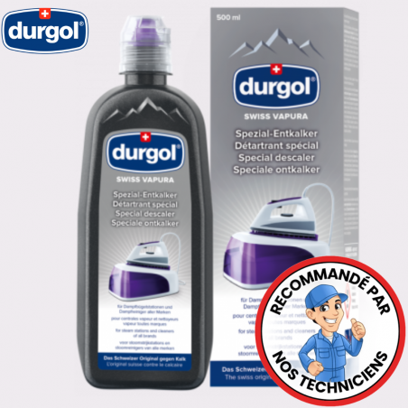 Un flacon de Durgol Swiss Vapura dissout environ 30g de calcaire. La formule d'entretien prolonge la durée de vie de votre appareil à vapeur.